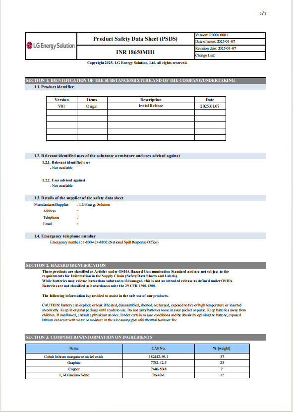 - Reliable Safety Design: Built-in protection features and LG’s proven cell chemistry stability.
