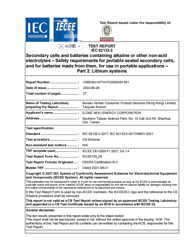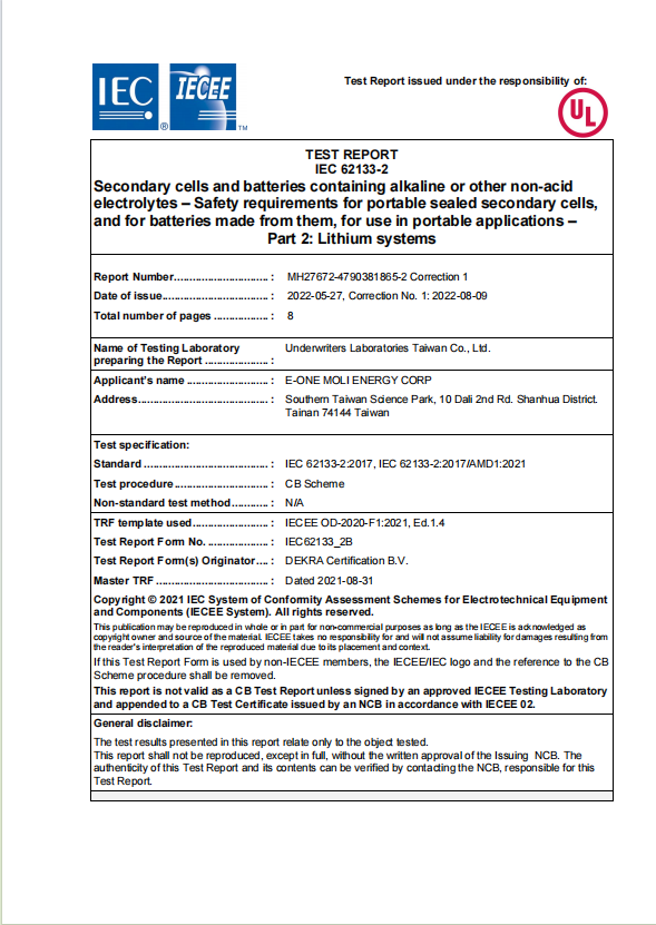- Wide Temperature Range: Charge: 0°C to 60°C; Discharge: –40°C to 60°C.