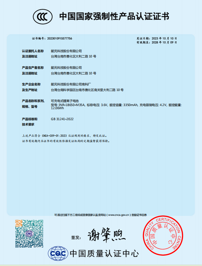 - Nominal Voltage: 3.6 V, with charge termination at 4.2 V and discharge cutoff at 2.5 V.