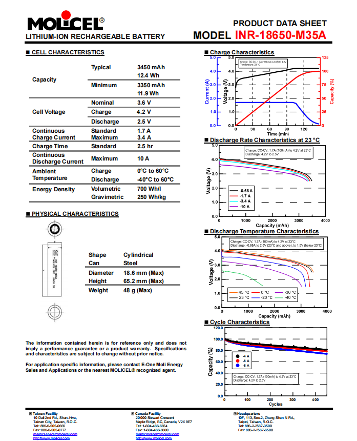 Factory Direct Supply-Guarantee 100% Genuine Cells And Better Price Molicel INR18650 M35A battery cell specification