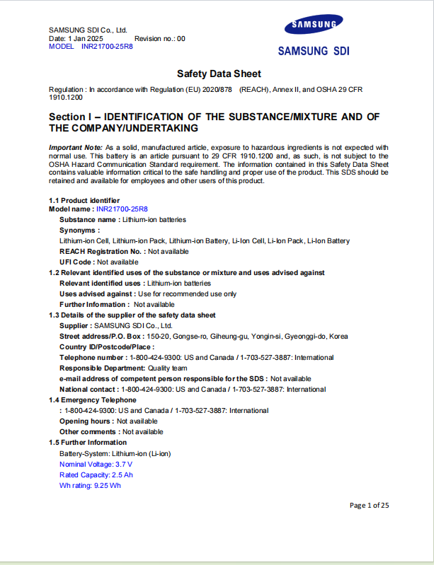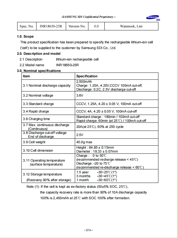 Factory Direct Supply-Guarantee 100% Genuine Cells And Better Price SAMSUNG INR18650 25R battery cell specification
