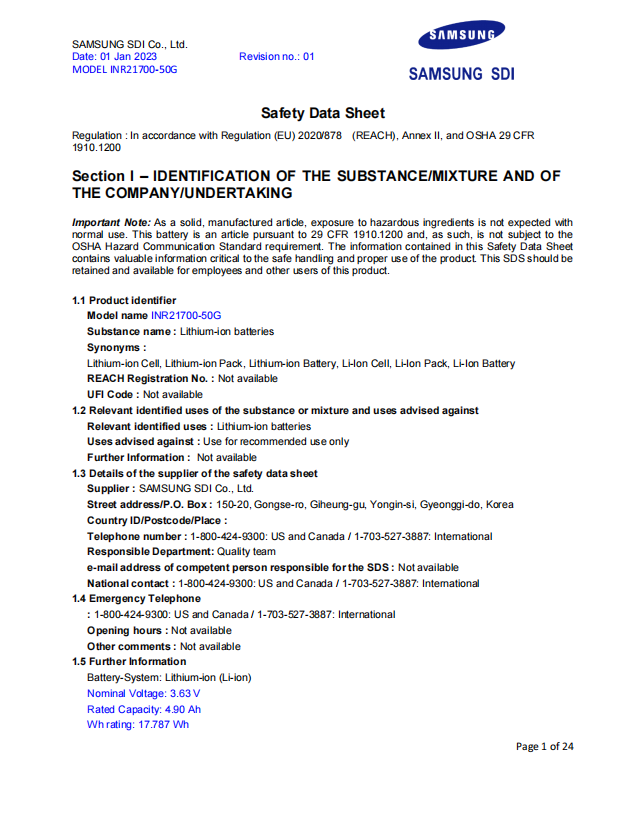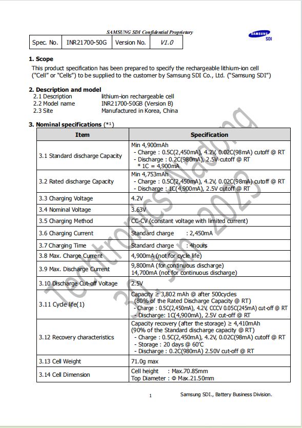 Factory Direct Supply-Guarantee 100% Genuine Cells And Better Price SAMSUNG INR21700 50G battery cell specification