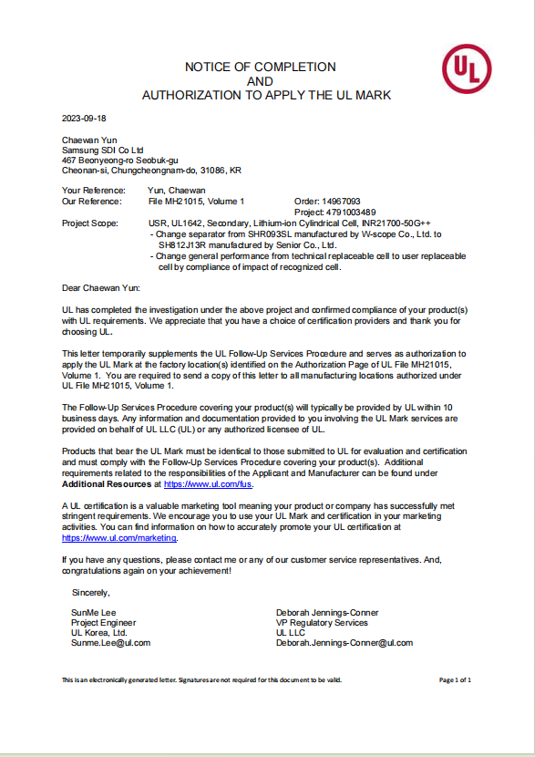 - Recovery After Storage: Recovers ≥ 4,410 mAh (≈ 90% of capacity) after 30 days at 60°C.